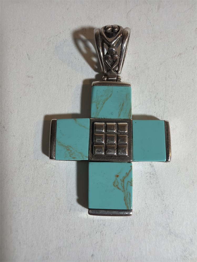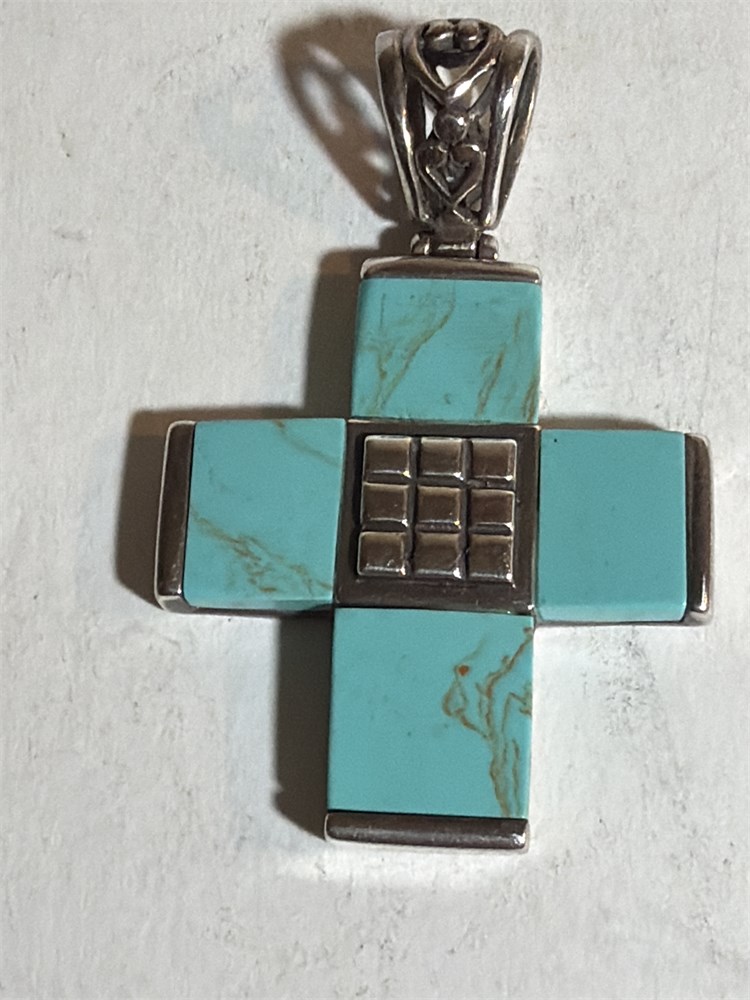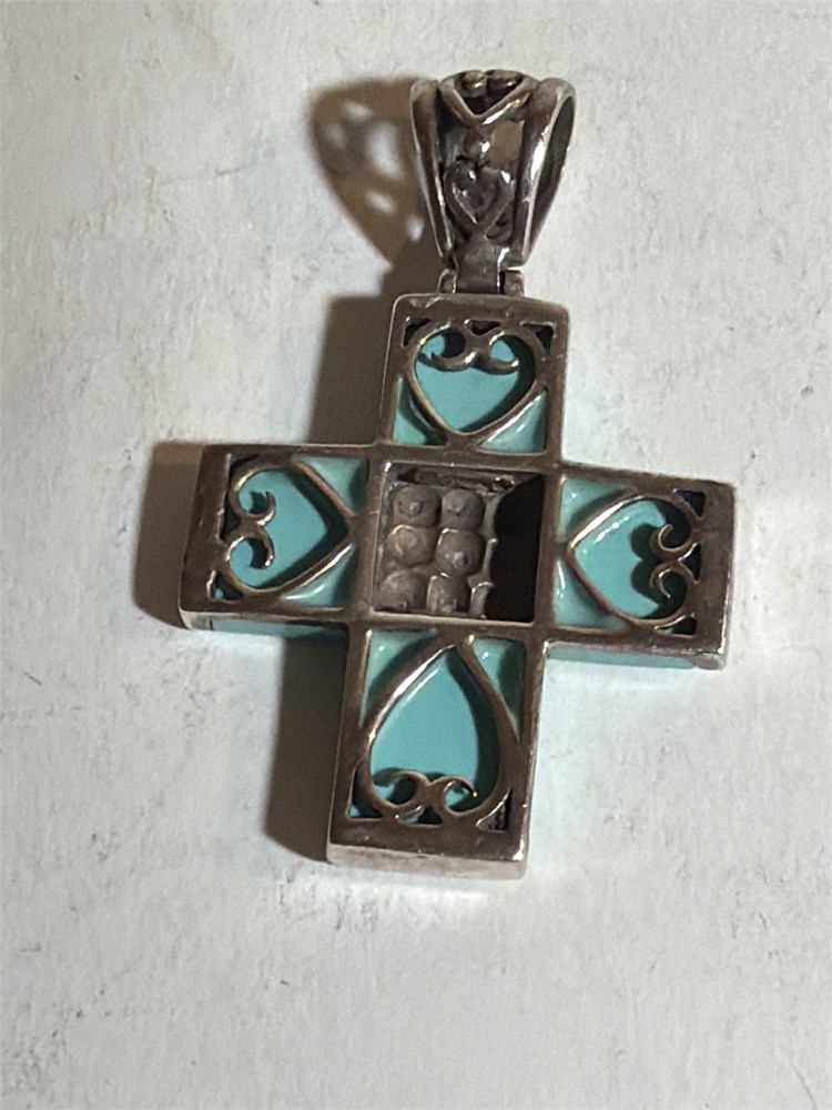 925 Sterling Silver Turquoise Onyx Cross Pendant (L)