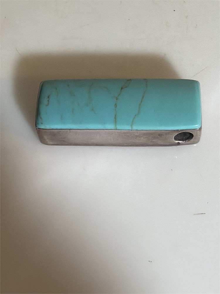 925 SterlingSilver Turquoise Rectangular Bar Pendant Necklace (L)