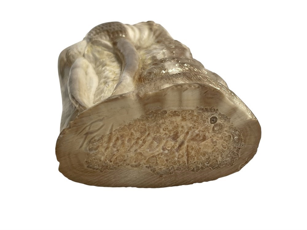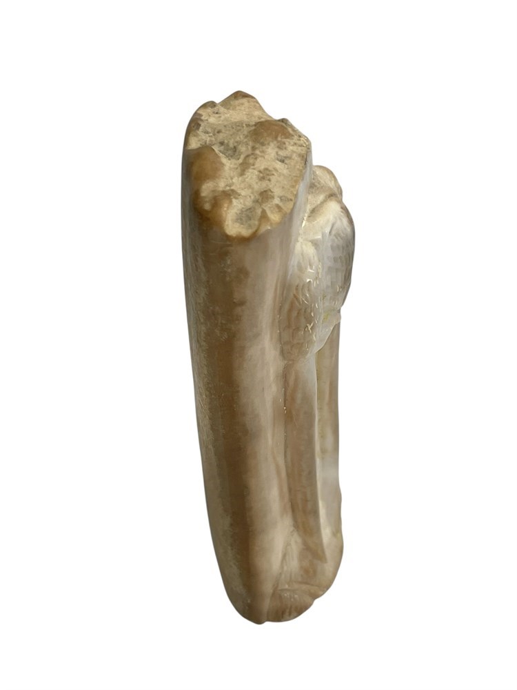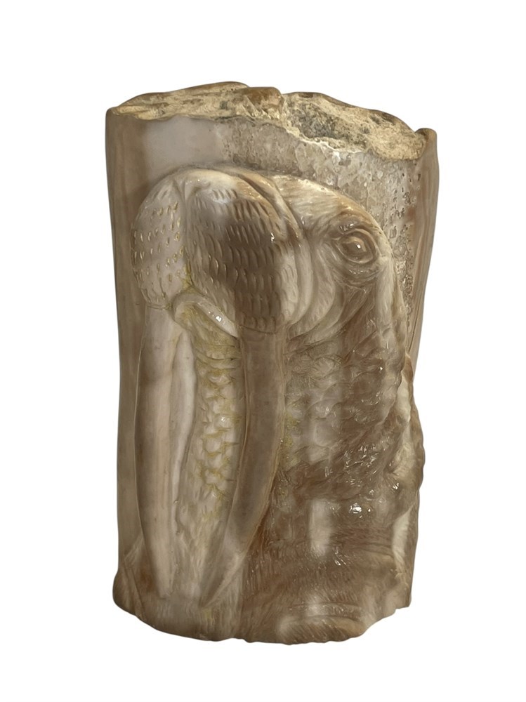Polished fossilized tusk; artist signed: Pelowook