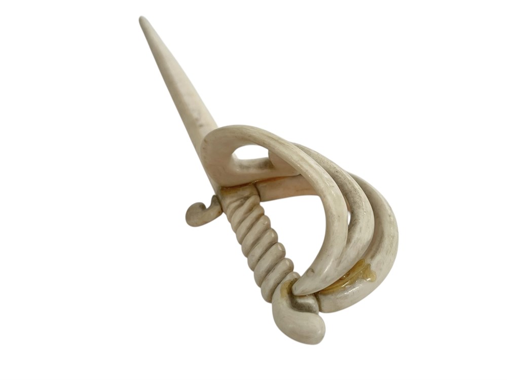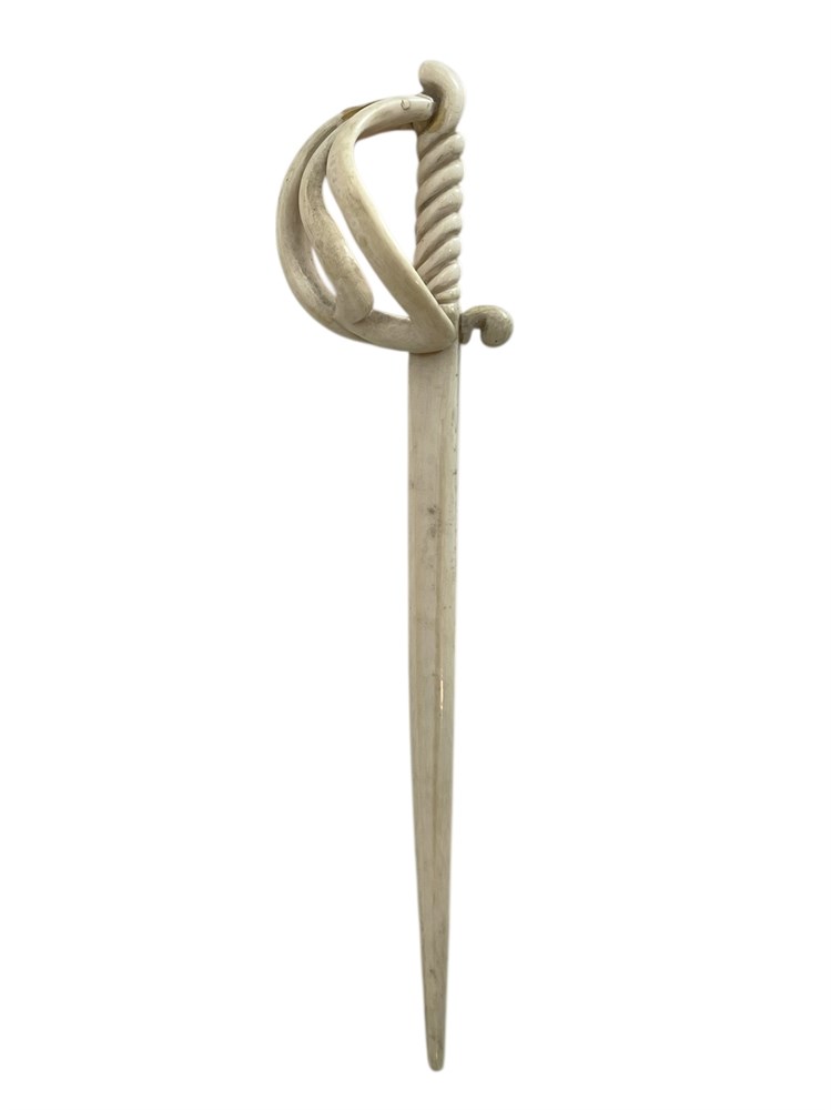 Carved fencing style sword.  Condition includes glue on the hilt end as shown in photo(s).