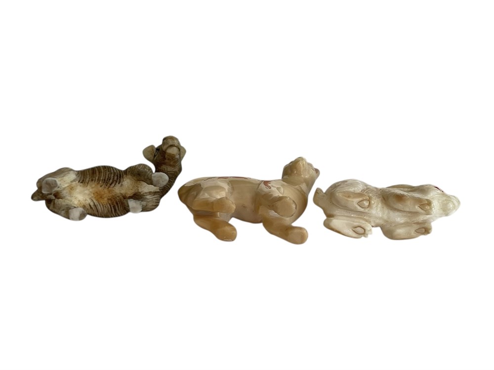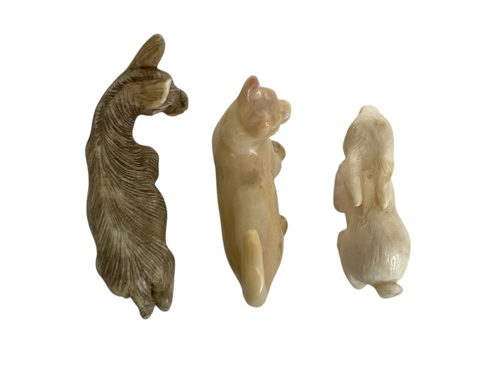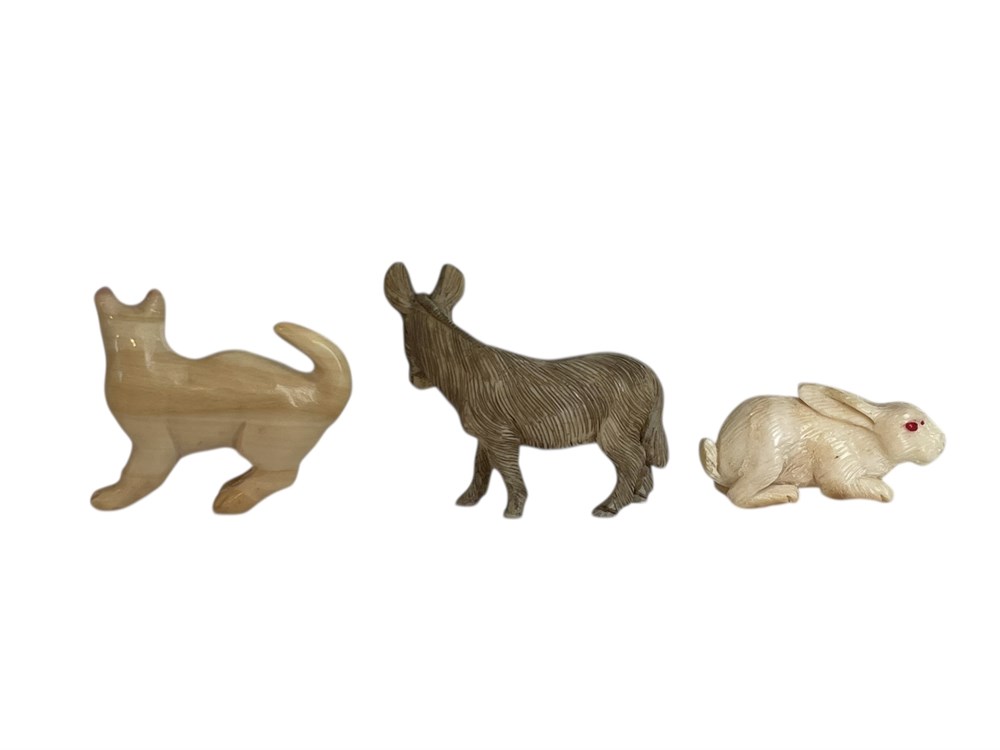 3 Miniature Animal Carvings: Donkey, Cat, Rabbit