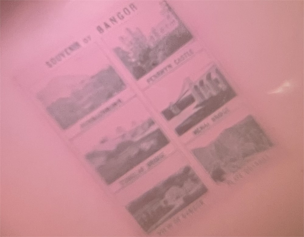 The column-shaped case has a stanhope view of multiple scenes of Bangor.  The umbrella shaped case has a spot for a viewer but there is no picture there.