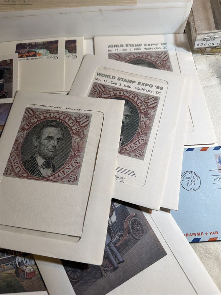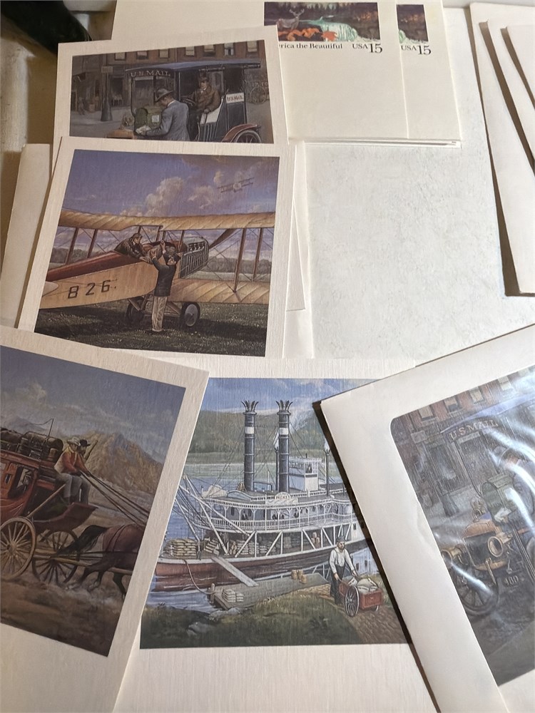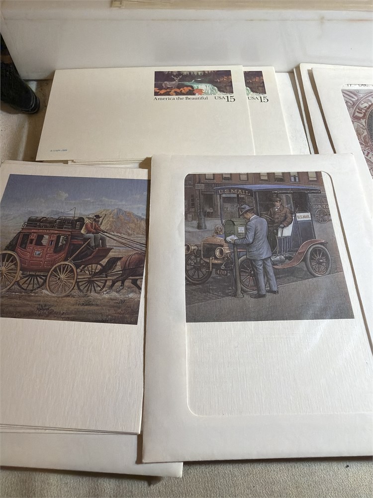 Large/Medium USPS Glassine Sheet Stamp Envelopes in a large lot of uncirculated postcards and envelope envelopes