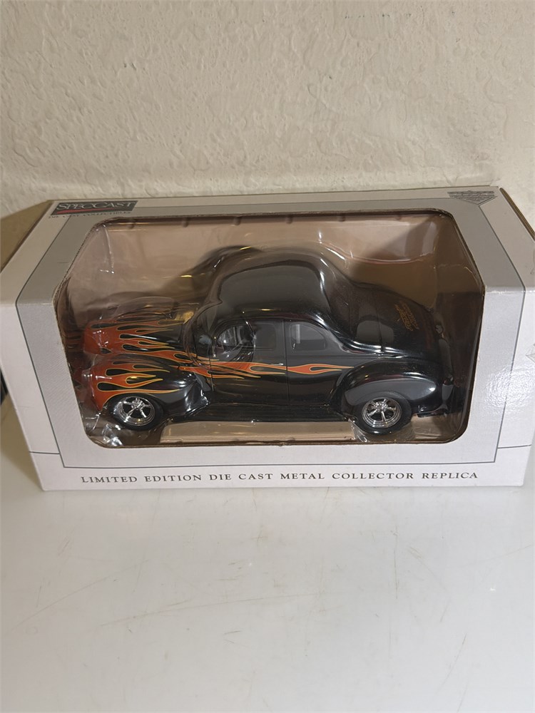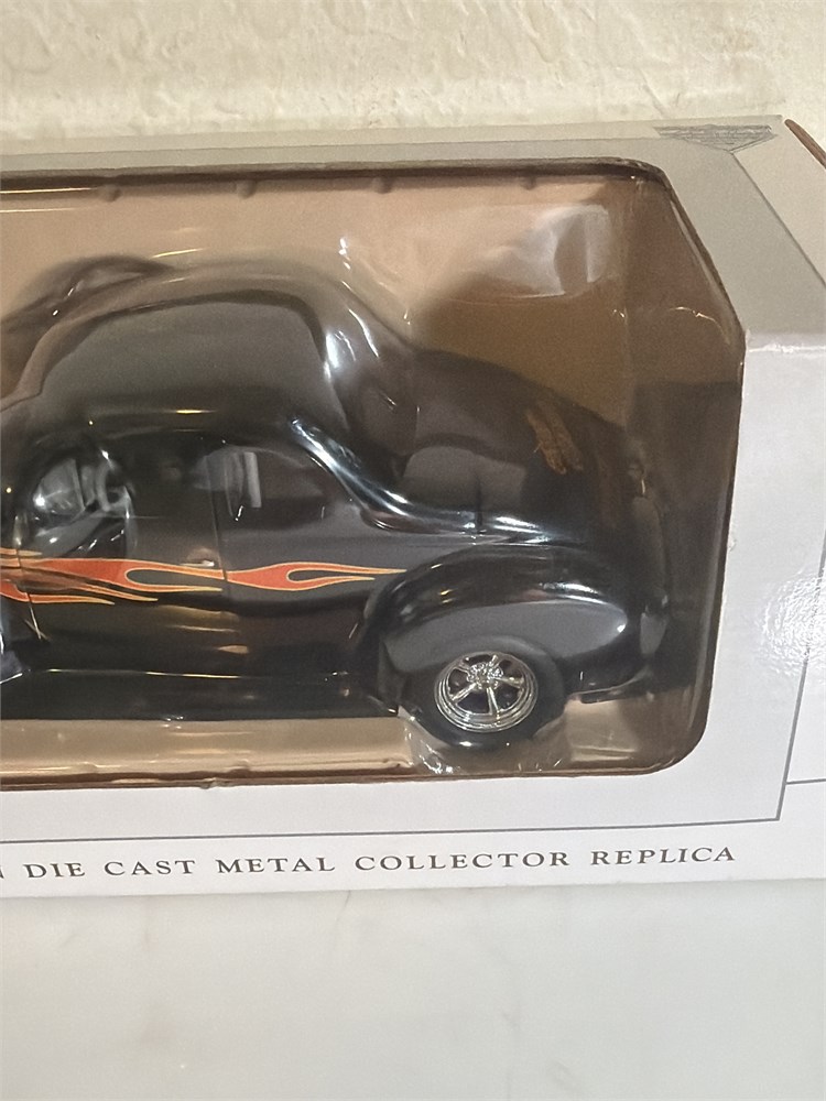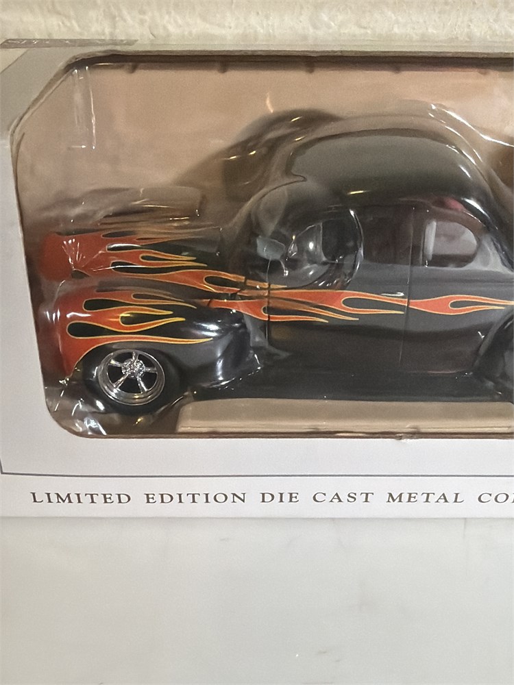 Limited edition, diecast metal collectible Michigan hot rod 40 Ford coupe Black with orange flames