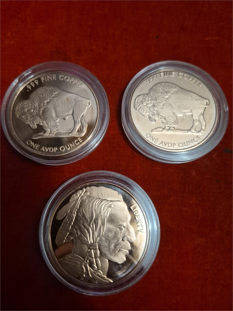(3) Indian Head Buffalo 1 oz. Pure Copper Round, .999 (C2)
