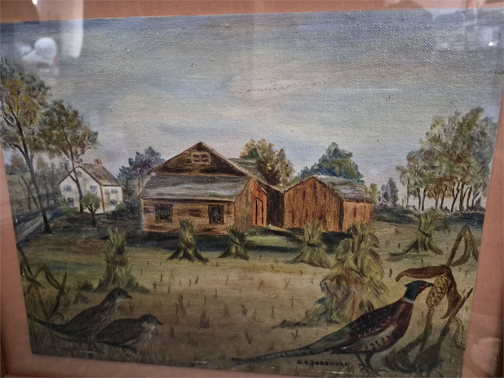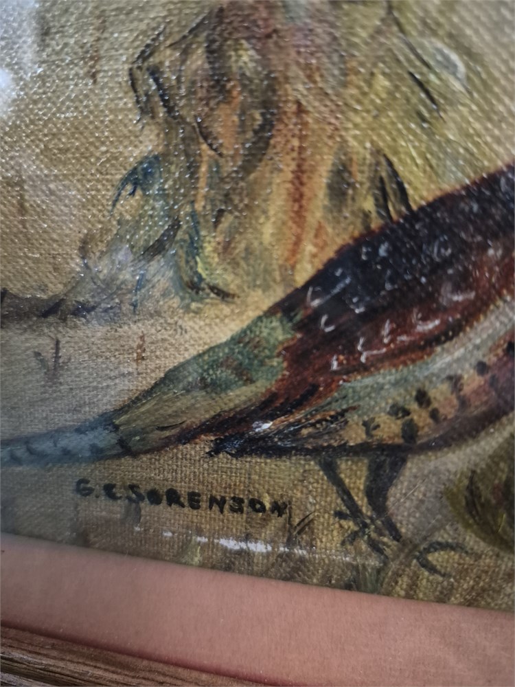 Nice signed oil on canvas. Canvas is framed. G E Sorenson is signature.  Frame measures 16.5"x13.5". Painting is 12"x9".