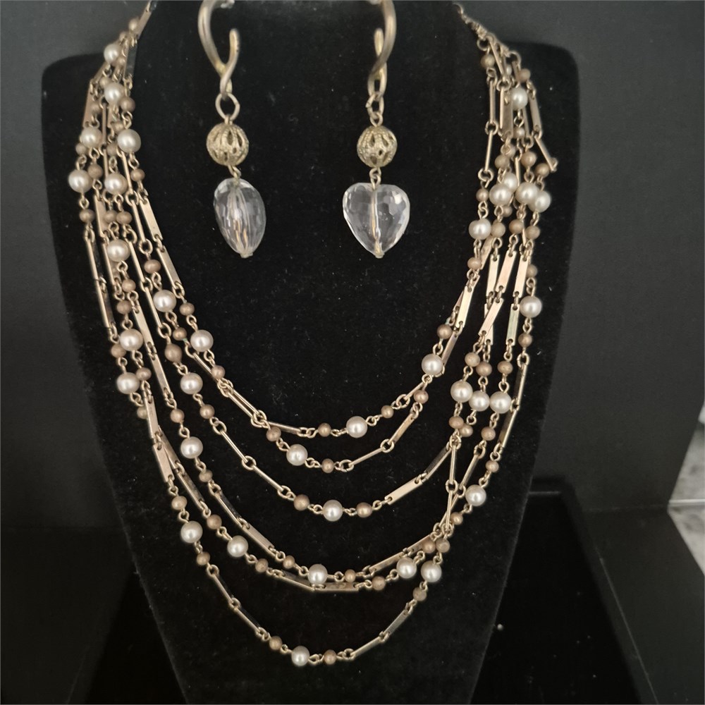Vintage Pearl & Gold bead Necklace & Earrings match