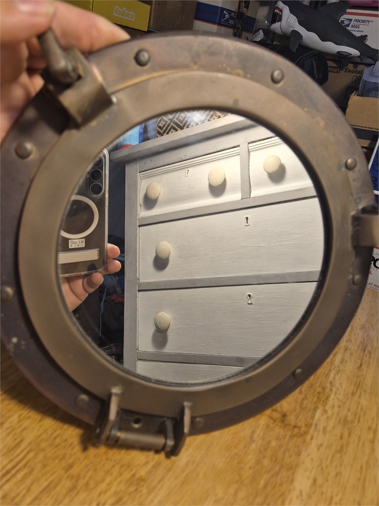 Vintage Marine Nautical Antique Brass Mirror Mirror11" Diameter  Porthole Window