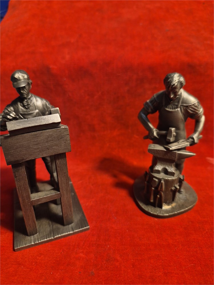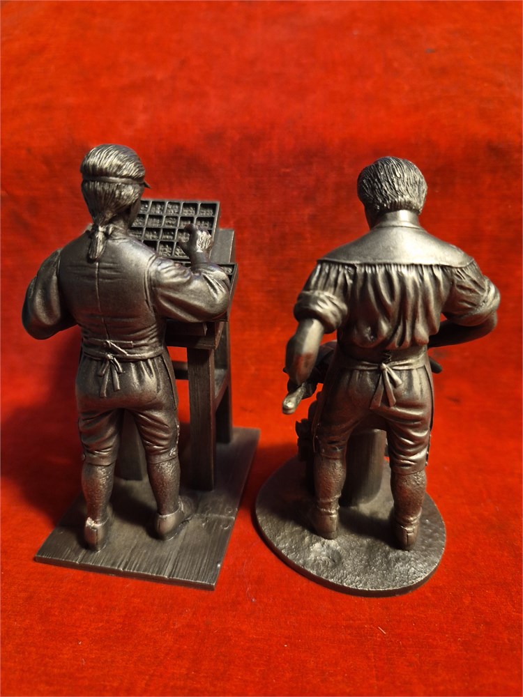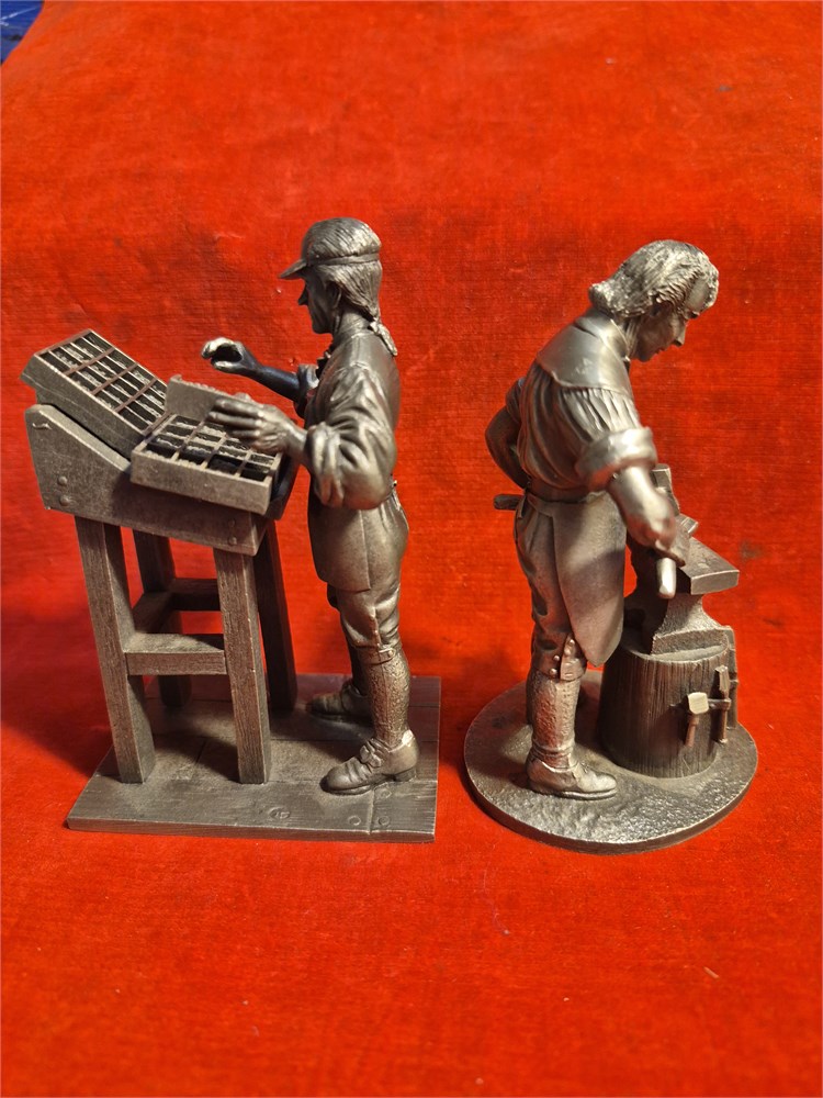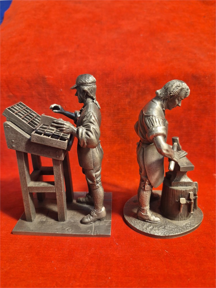 Franklin Mint pewter figures includes the blacksmith and the printer.Both stand just over 4.5".