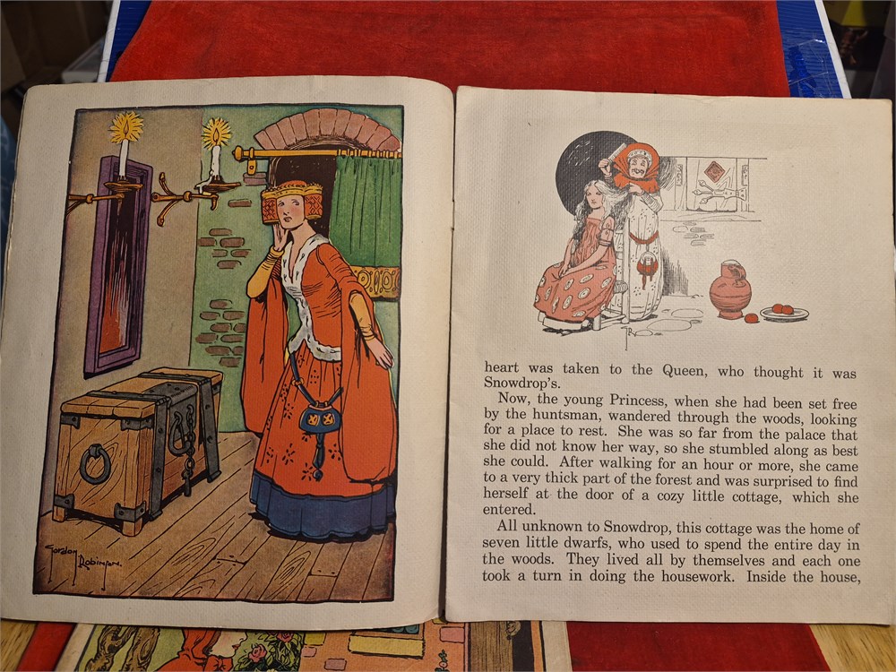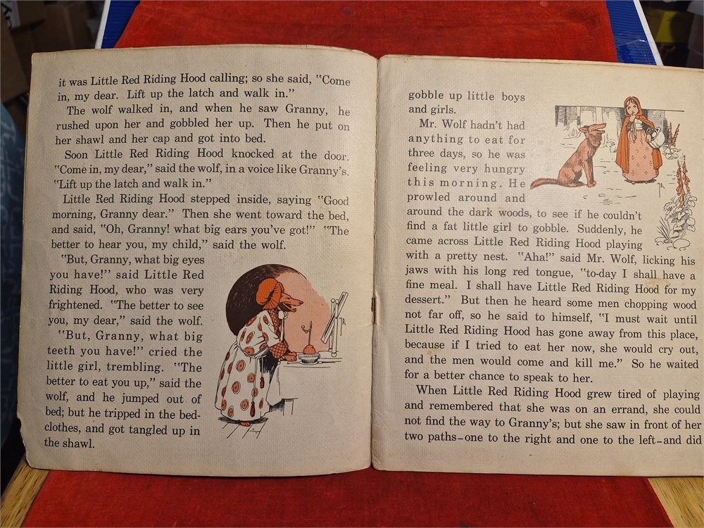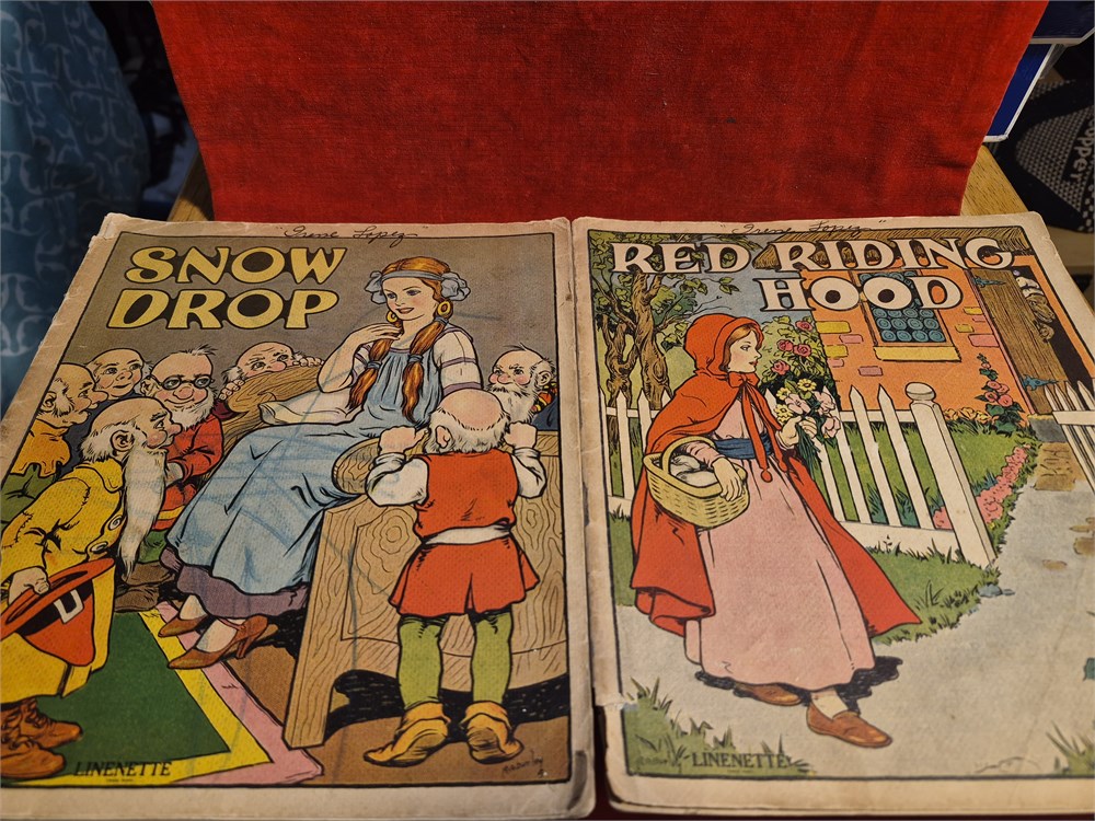 Two Vintage comic books. Late 1930s or early 1940s. Includes Red Riding Hood and Snow Drop. Both are in good used condition. There is some writing on Snow Drop.