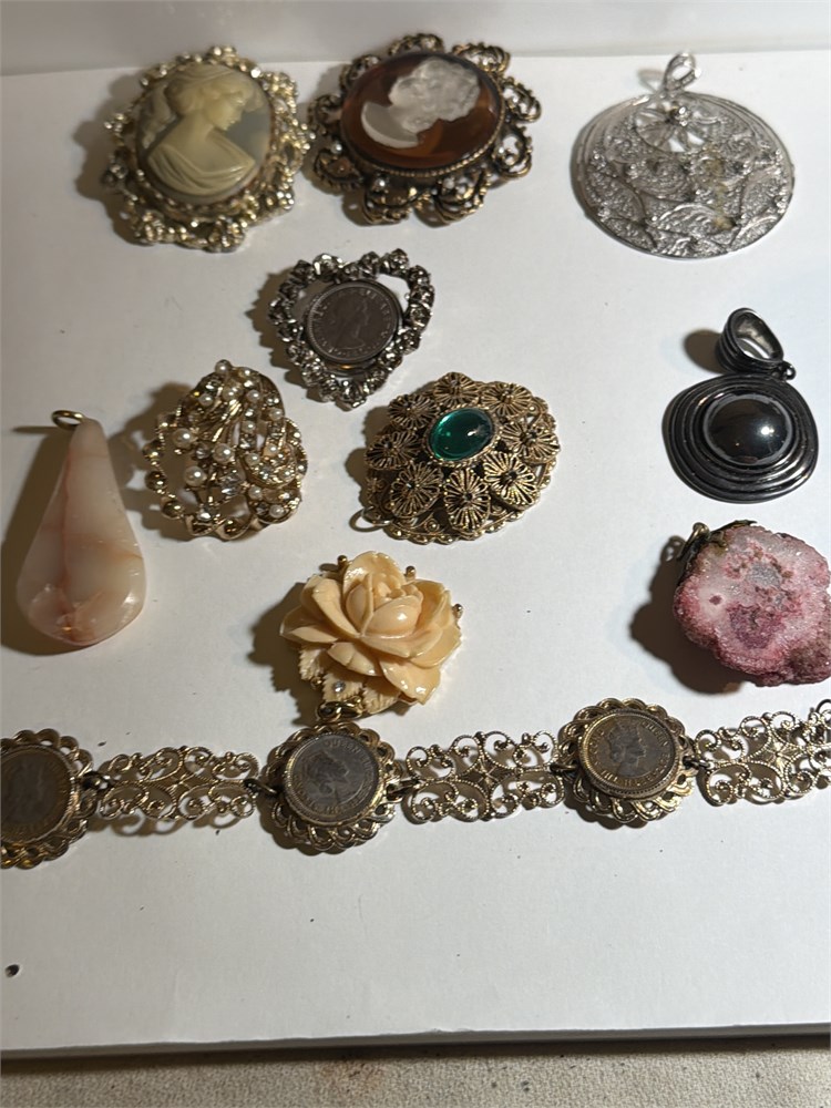 Assortment of vintage antique bracelet and pens Queen Elizabeth very collectible