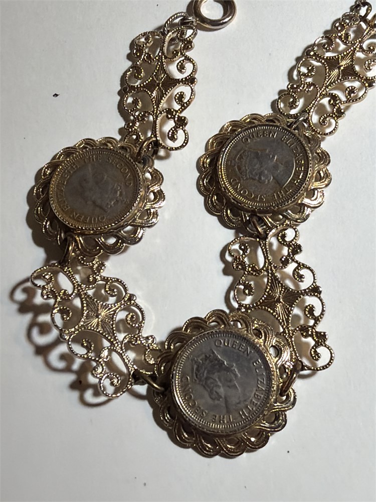 Queen Elizabeth bracelet three coins and pen one coin