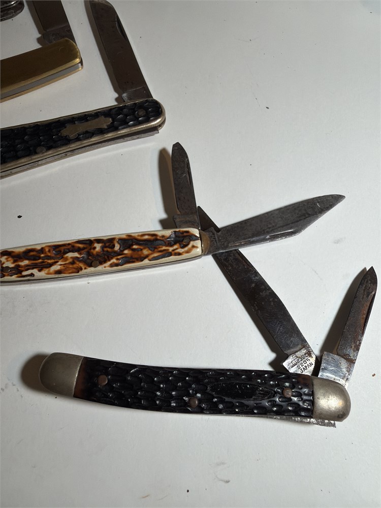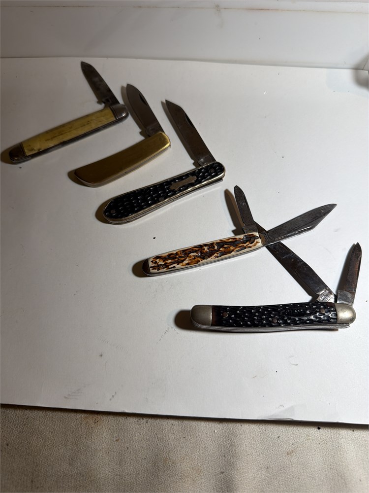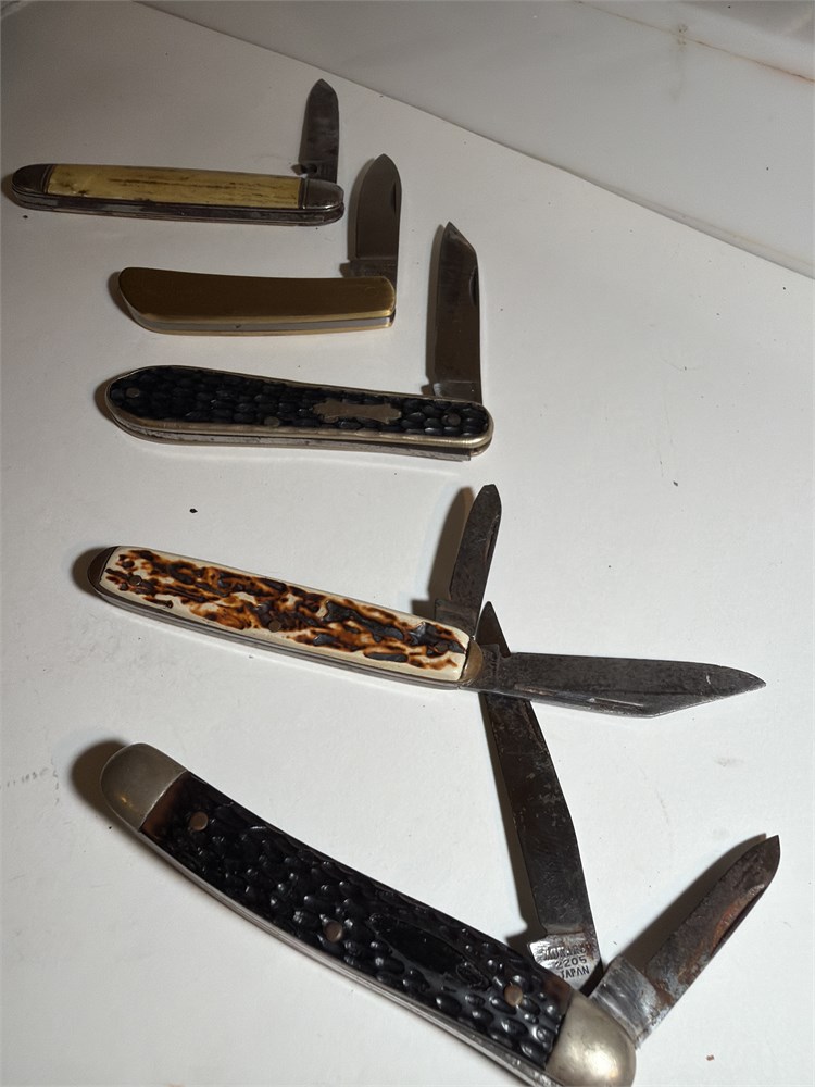 Assortments of five pocket knives Japanese made US maids, two and one blade knives, all in great shape
