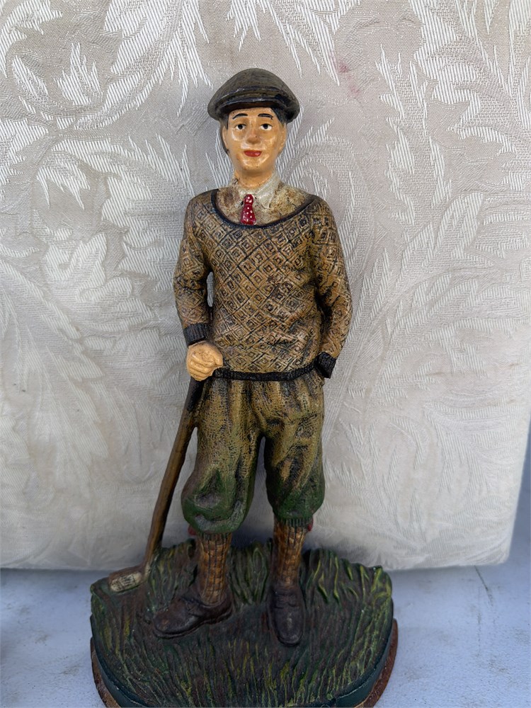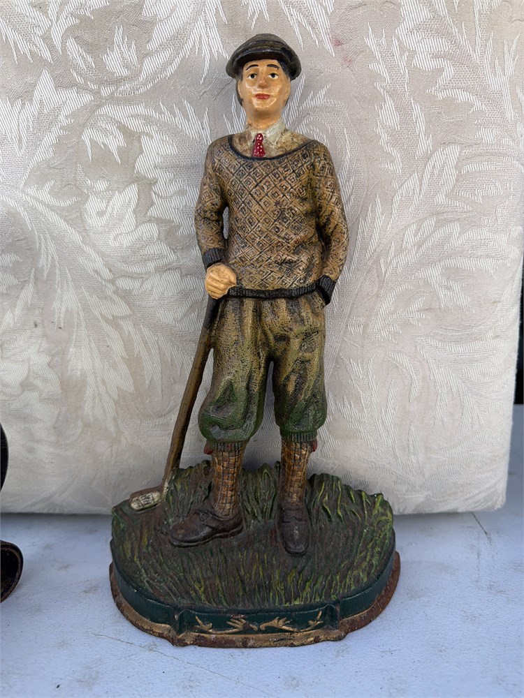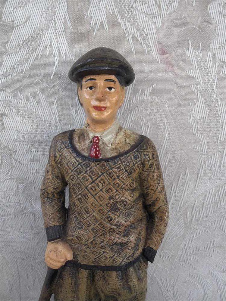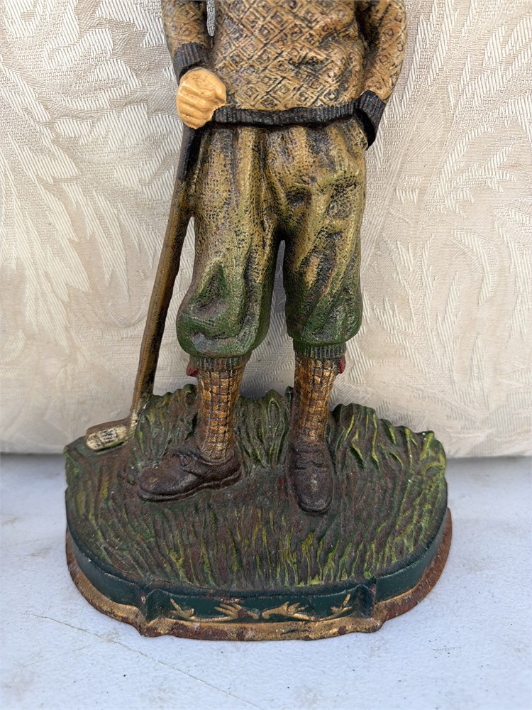 Vtg 1997 Large Cast Metal Painted Iron Golfer Door Stopper 14" Tall(LB)