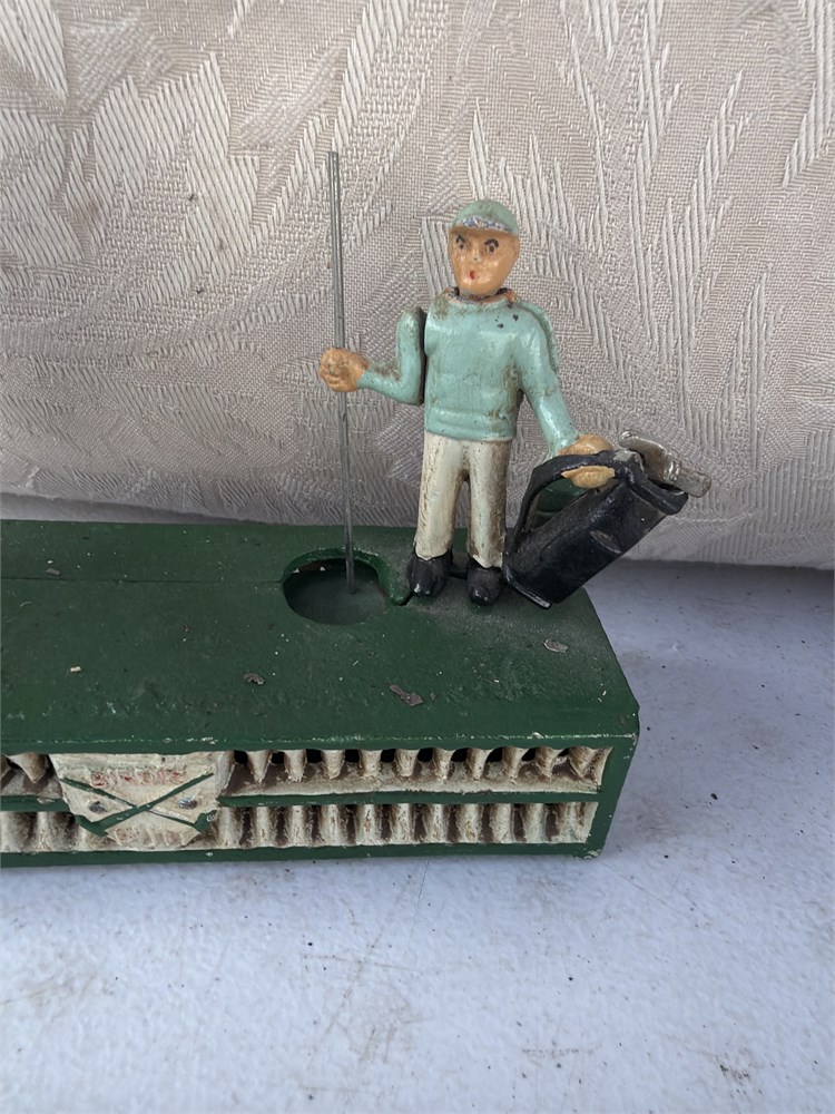 Vintage Cast Iron Mechanical Bank "Birdie Putt " Golfer And Caddy (LB)