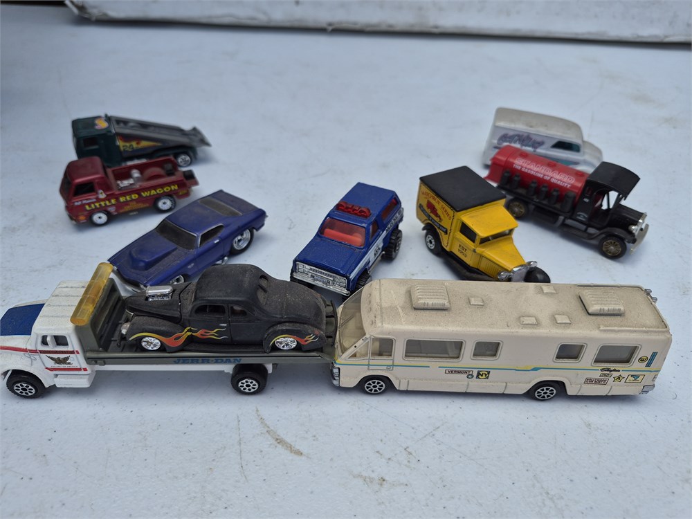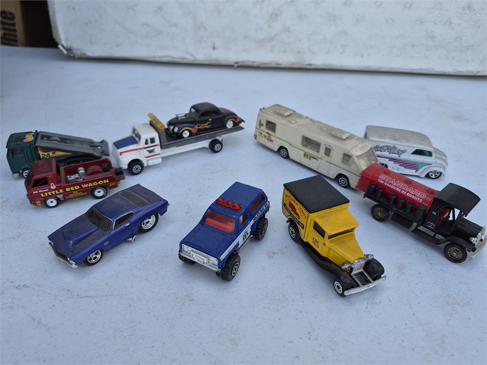 Lot of 10 1/64 diecast cars. Includes some higher end cars including the when a bago I am little red wagon. Brands include Hit Wheels, Matchbox and Racing Champs.