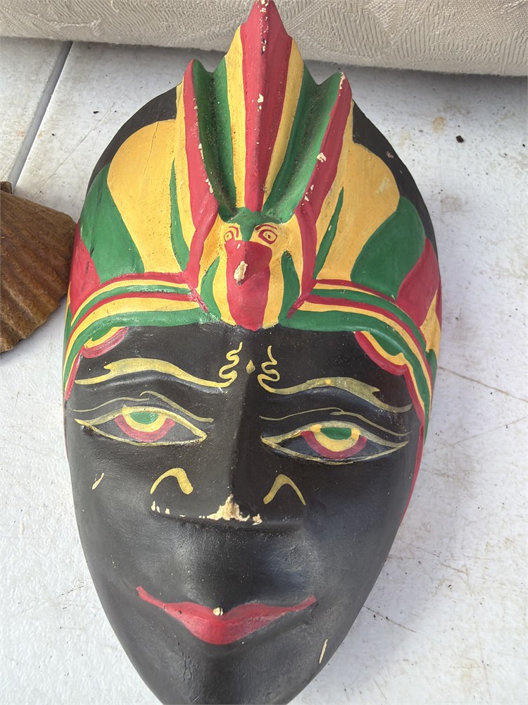 Hand painted hand carved 6in x 5in wooden masks
