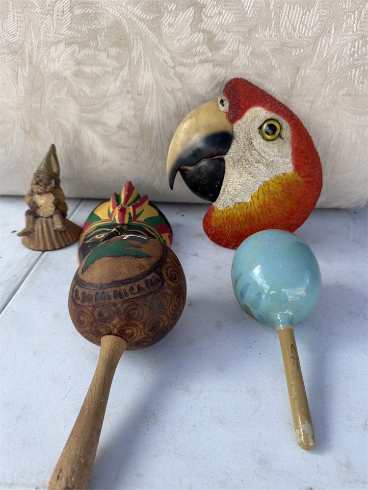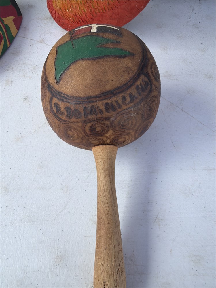 2 Maracas Beautiful Hand Carved Cuba Acapulco Wall hanging parrot