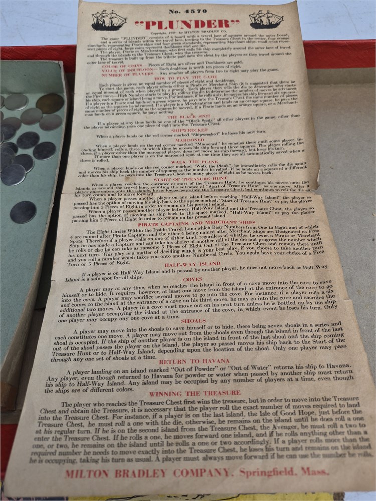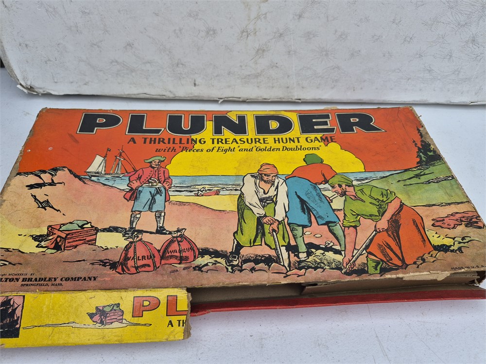 Vtg 1939 Milton Bradley Plunder Game. Game looks to be complete. Box is in need of repairs.