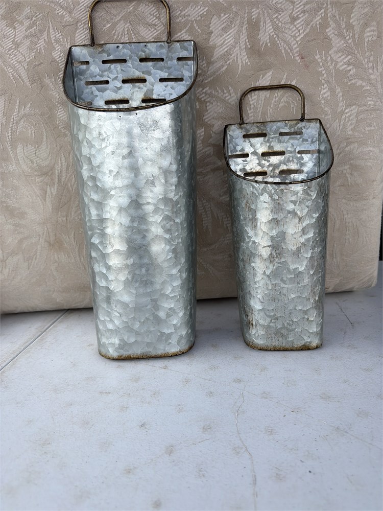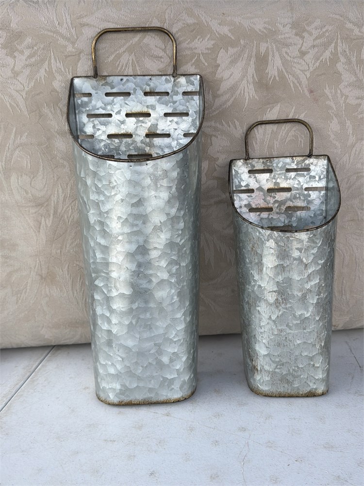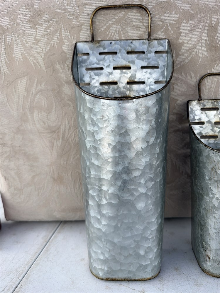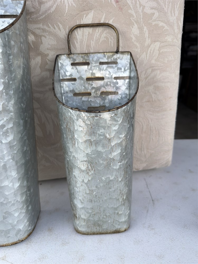 2) Galvanized Metal Olive Bucket Wall Pocket Planters (LB)