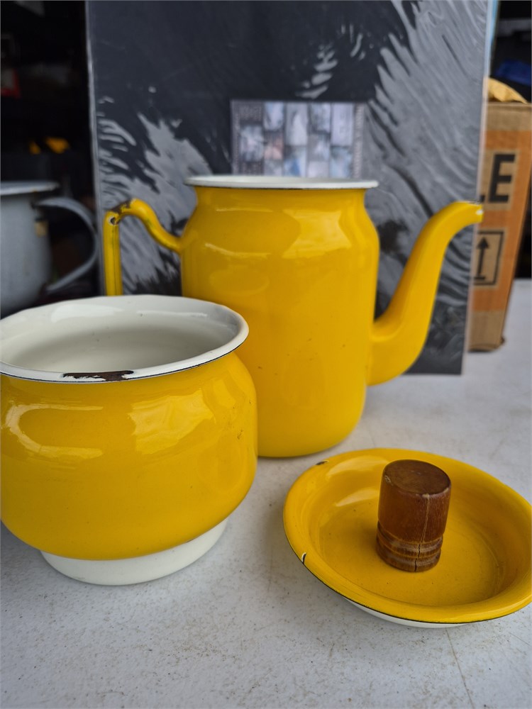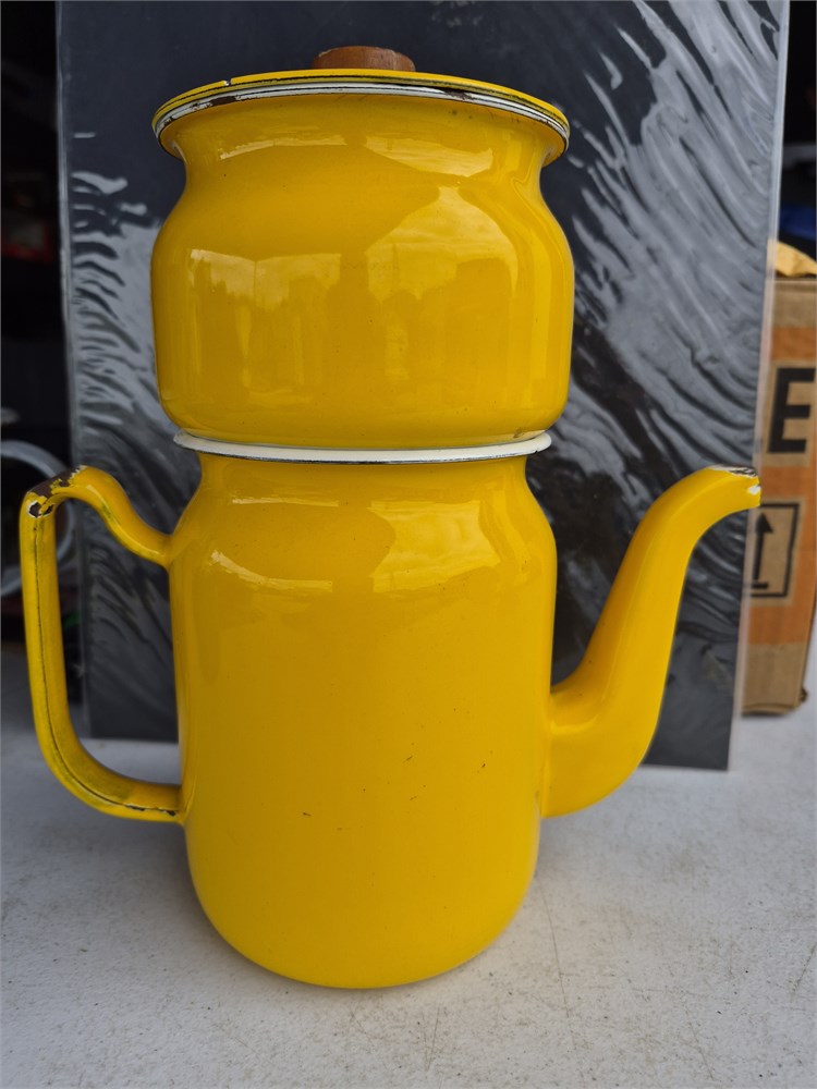 Vintage 1960s Enamelware Coffee Maker: Sunshine Golden Yellow (LB)