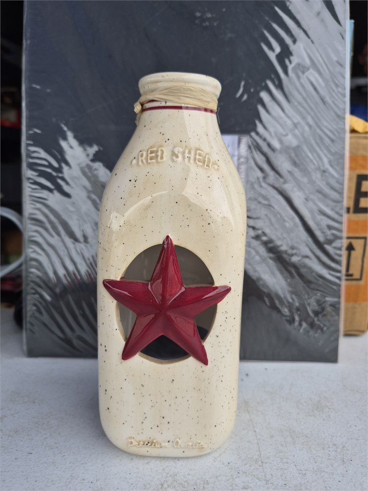 Red Shed Milk Bottle Candle Holder.