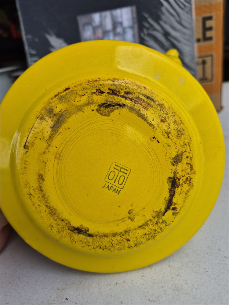Vintage yellow and black enamel teapot kettle with handle and lid Japan (LB