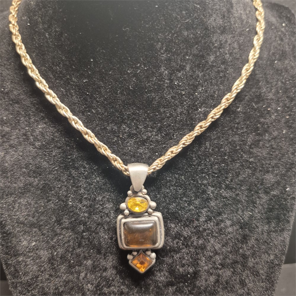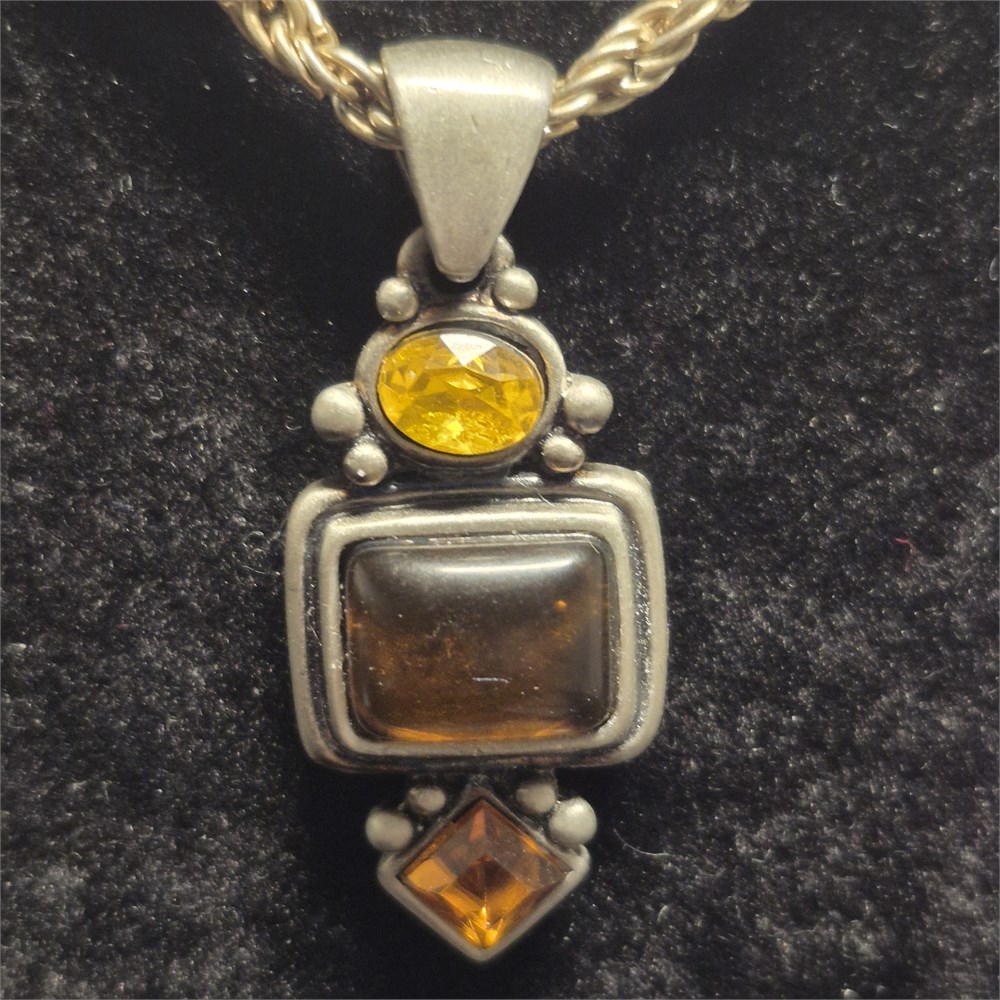 Vintage Naturanl Amber Necklace w/ sterling pendant [tests sterling] [v]