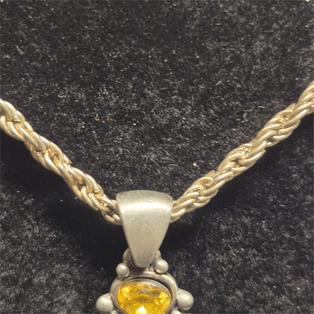 Vintage Naturanl Amber Necklace w/ sterling pendant [tests sterling]   [v]