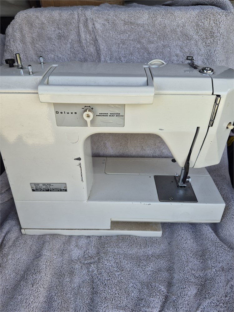 White Deluxe sewing machine precision built zigzag model 1510. Item works.