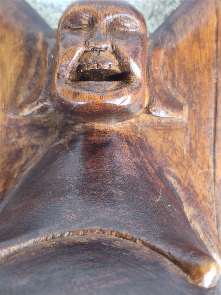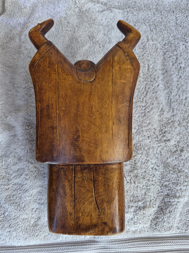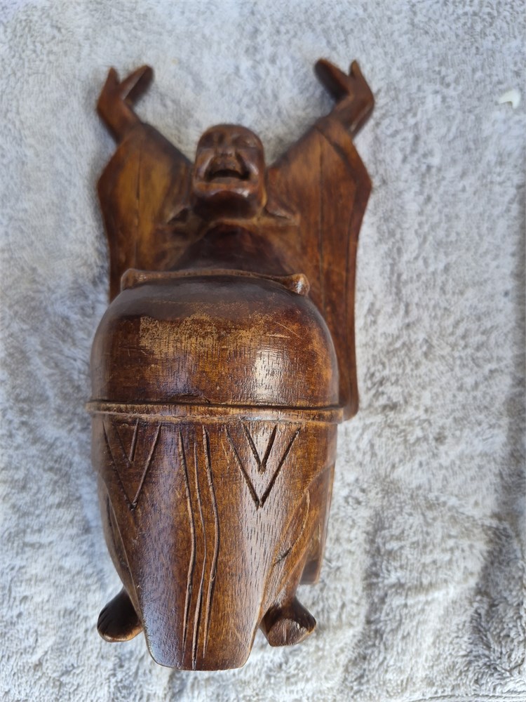 Vintage Approx 8" T Miniature Carved Wood Smiling Stretching Happy Buddha (LBDD