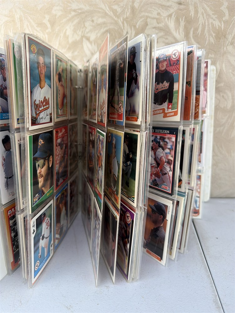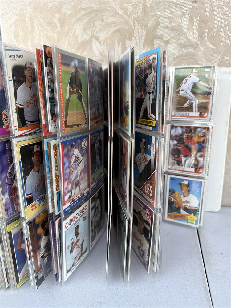 A binder with over 300 baseball cards 1980s 1990s binder is very full