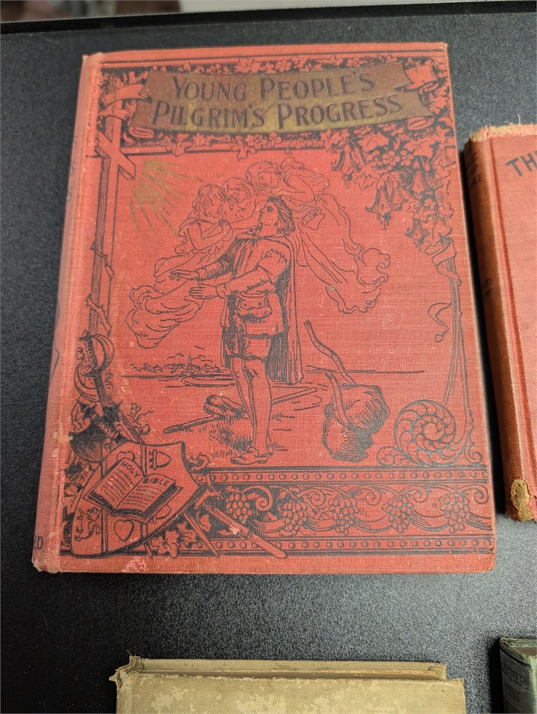 4 Book Lot of Old School Books including Pilgrims Progress