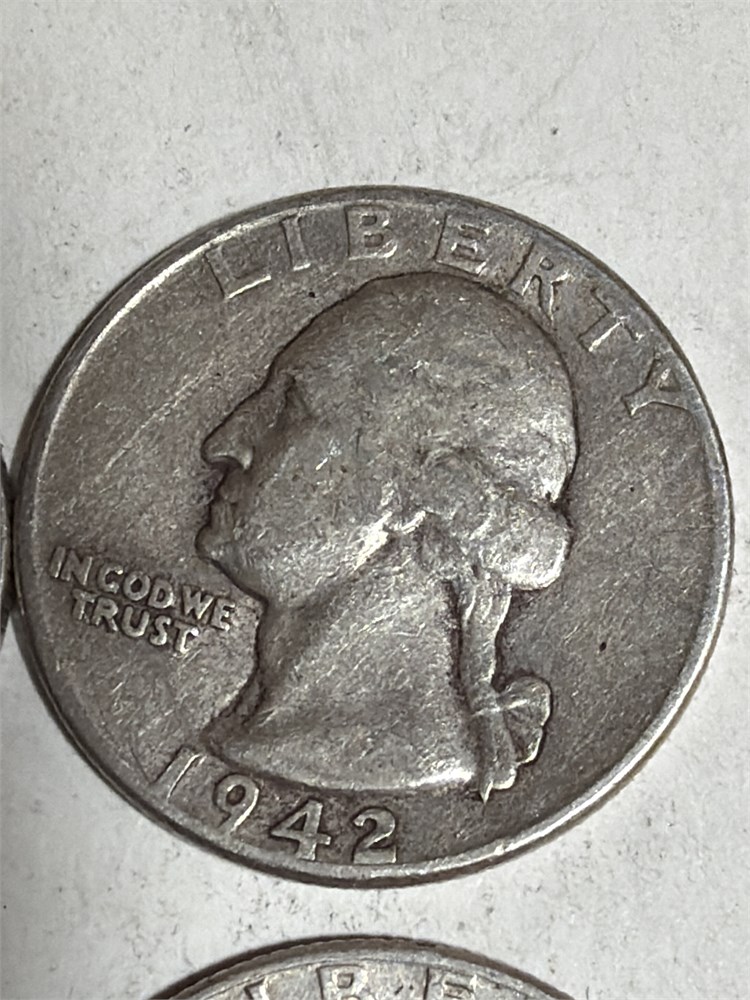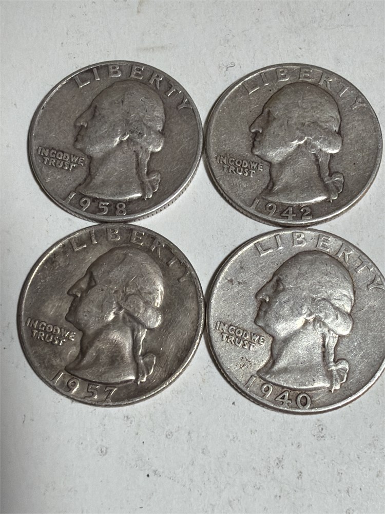 4-Coin Lot • Washington Quarters (1940-1942-1957-1958  90% Silver