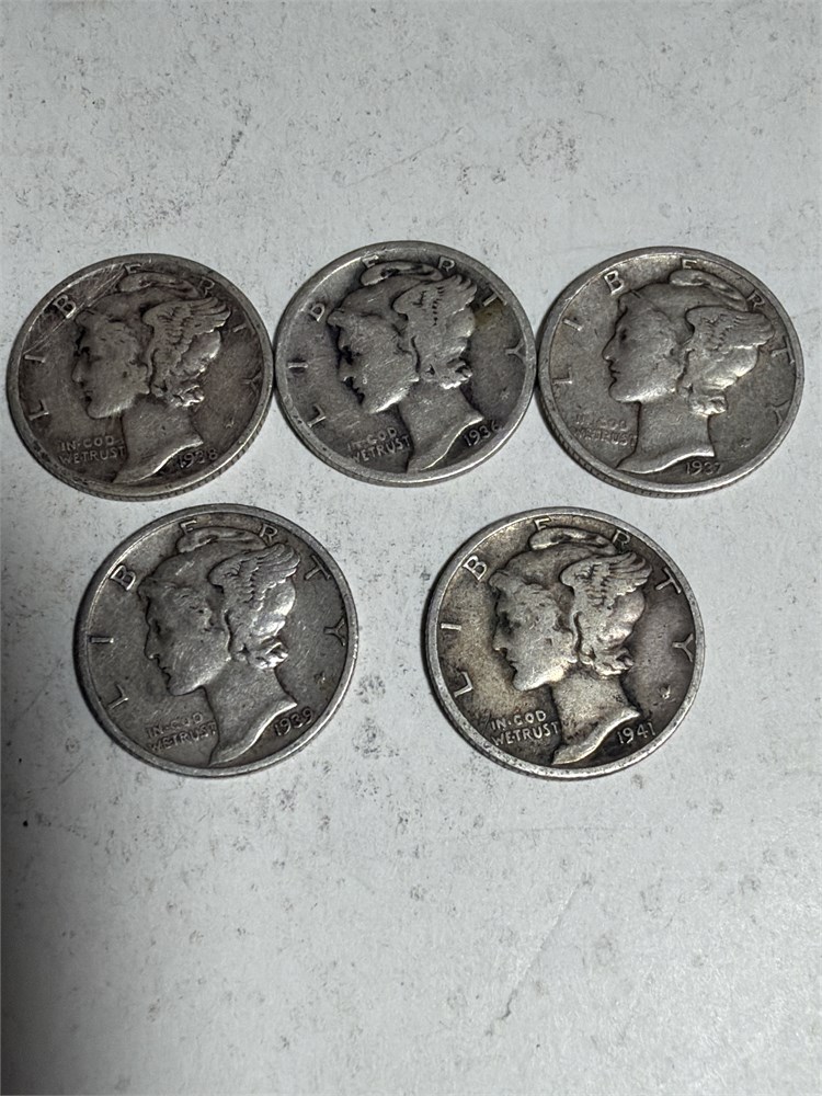 5 Beautiful Silver Vintage Mercury Dime Coin Collection(L)