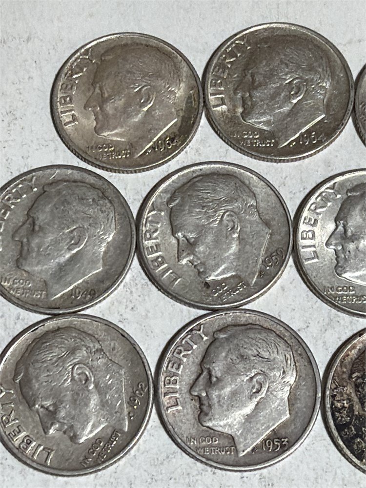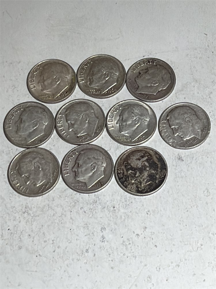 Silver Roosevelt Dime Lot 10 Coins Various Years (L)
