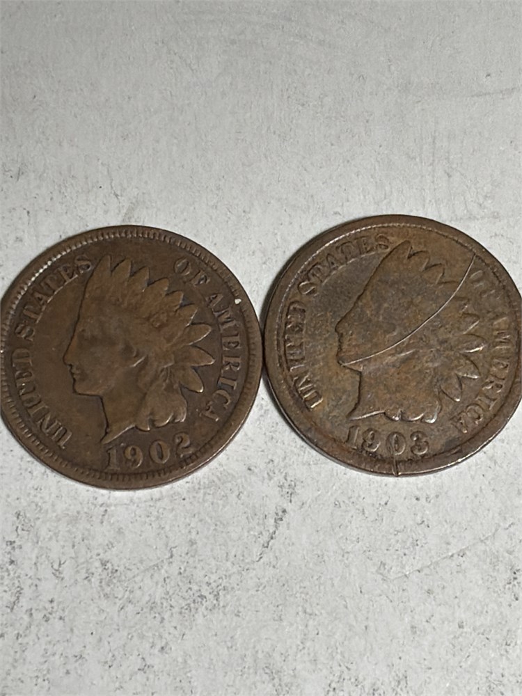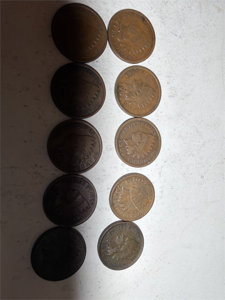 10 Indian head pennies all in fantastic shape 1900, 1901, 1902, 1903, 1904, 1905, 1906, 1907, 1908, and 1909 very rare to find in sequence