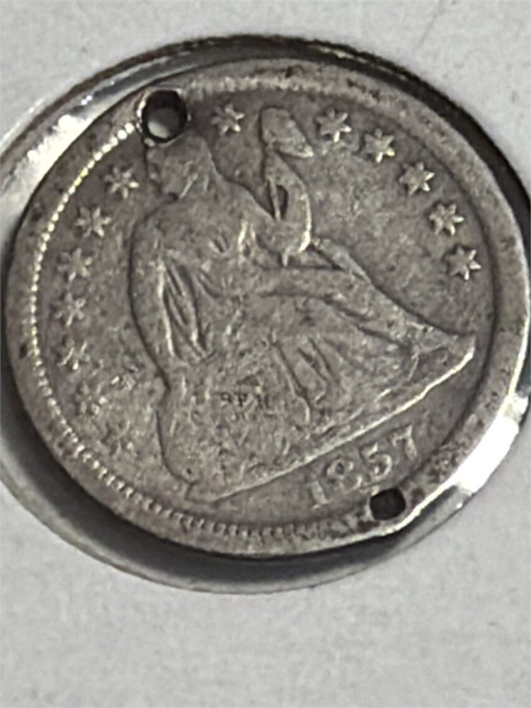 *USA 25c ~ Seated Liberty Quarter 1857 Silver Coin(L)