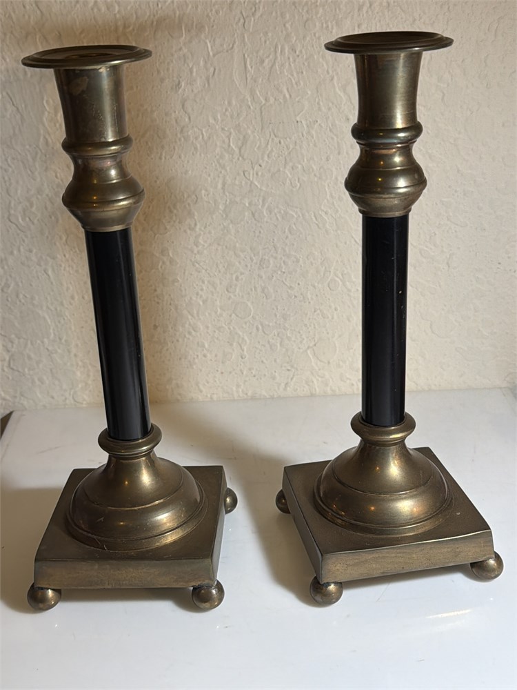 Vintage Brass and Black Taper Candle Holder Candlestick Set