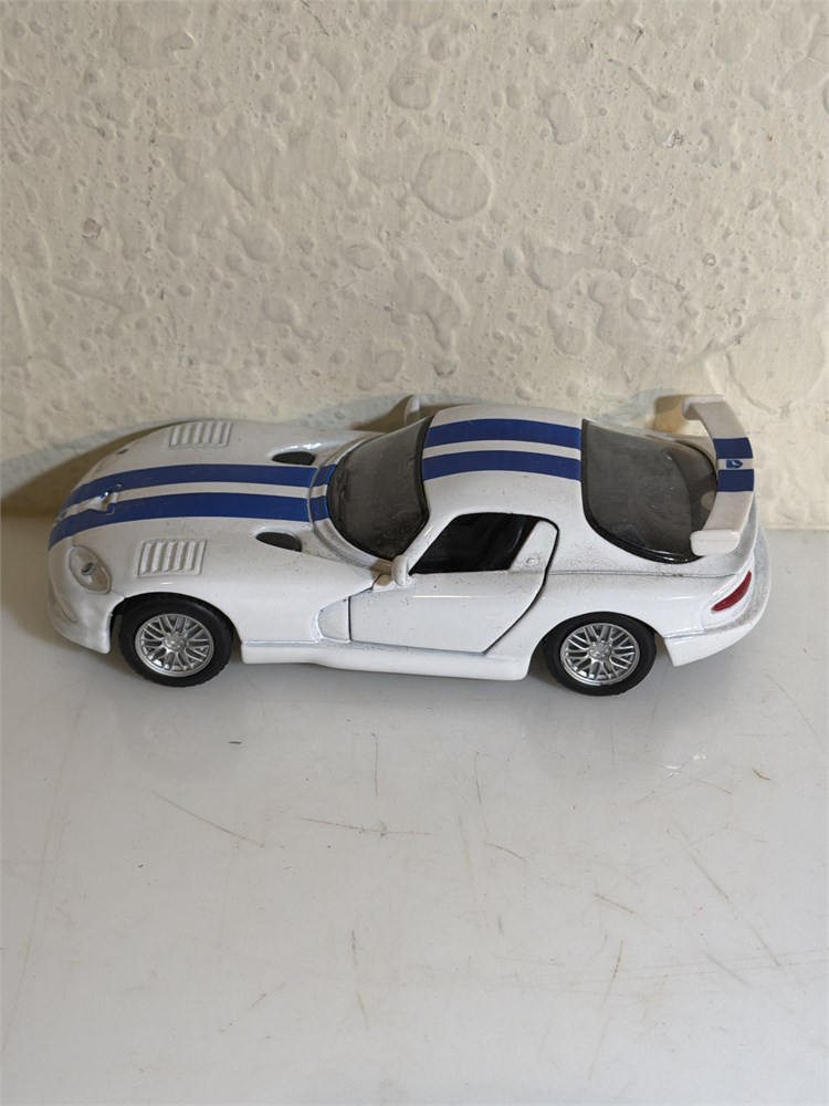 1998 Maisto 1:39 Dodge Viper GTS Coupe White w Blue Stripes Diecast Pullback