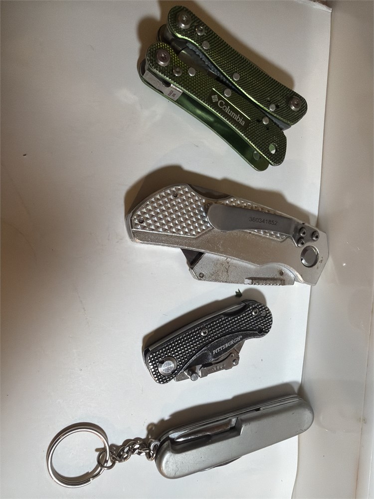 Assortment of pocket knife, all purpose, knife, made by Columbia Gardner razor blade Pittsburgh razor blade, Boy Scout, Cub Scout