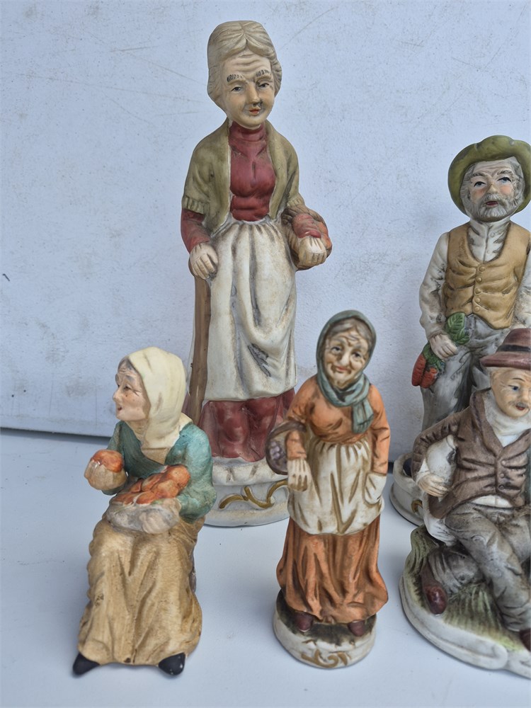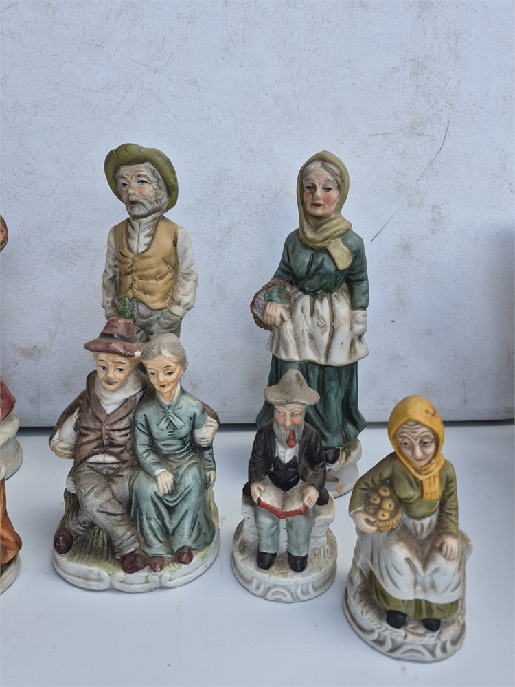 Lot of 8 Porcelain figures. Made in Taiwan. Largest figure is about 12" tall.