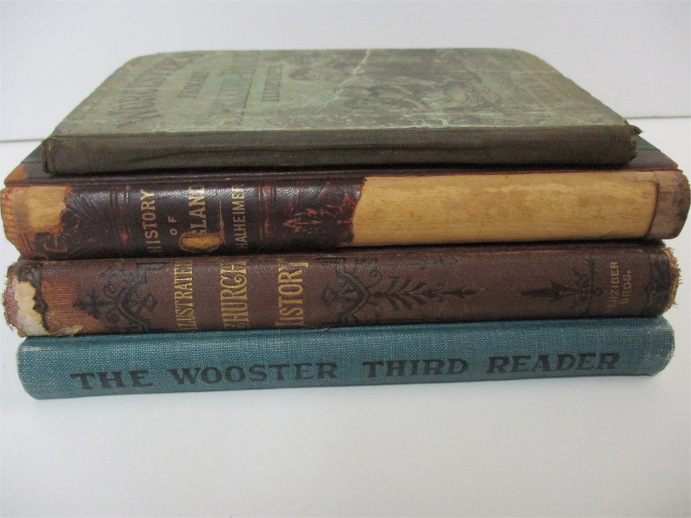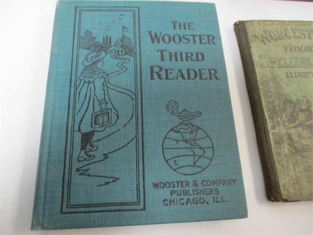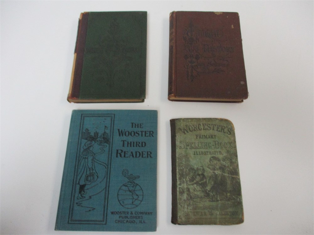 4 Book Lot, Old School Readers, Worcester's Spelling, History England, Church History, Wooster 3rd Reader
