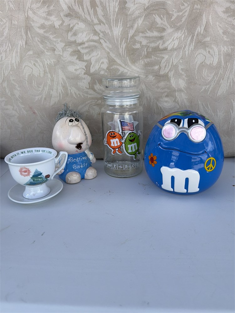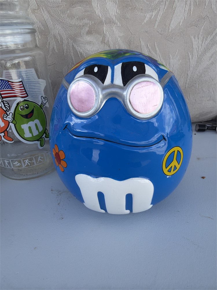 Rare 2003 Blue M&M's Ceramic Candy Jar - Hippie Flower Power VTG L.A.Olympic Committee M & M Mars, Inc 1983 Chocolate Candies Candy Jar #6