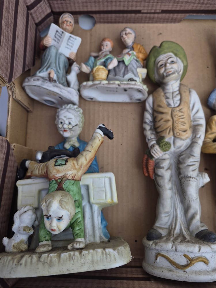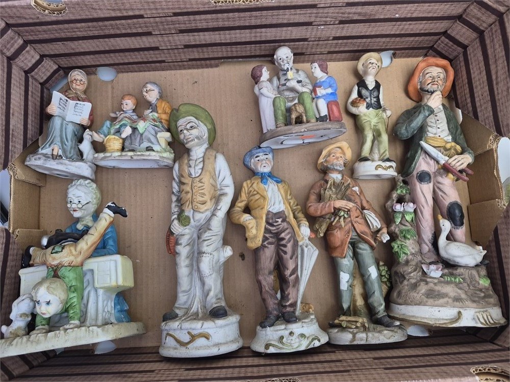 Lot of 9 vintage Porcelain Figures. Sizes are 5" to 14". Mostly made in Taiwan.