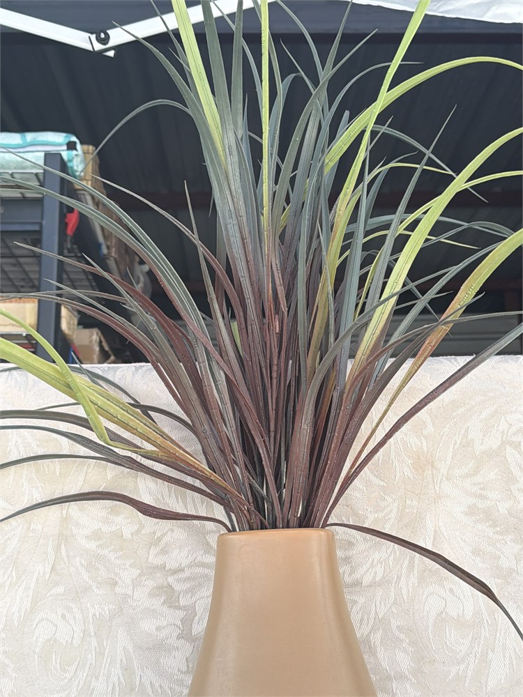 Natural Dried Grass - Floral Arrangement - Brown/Beige - Tan Painted Vase (LB)