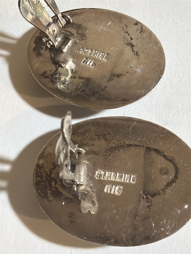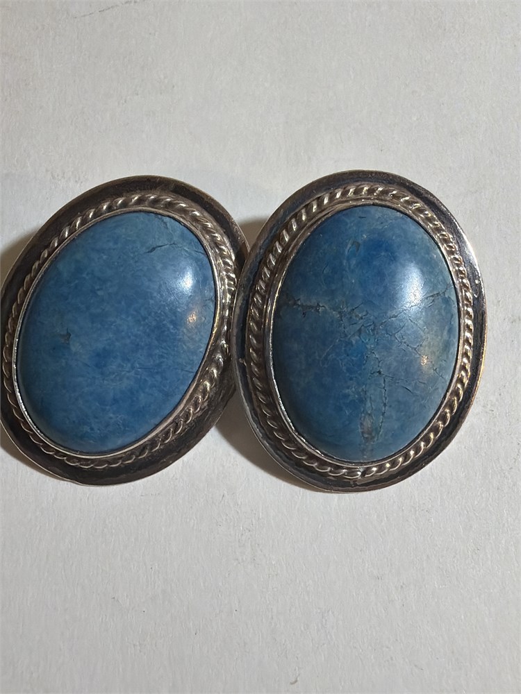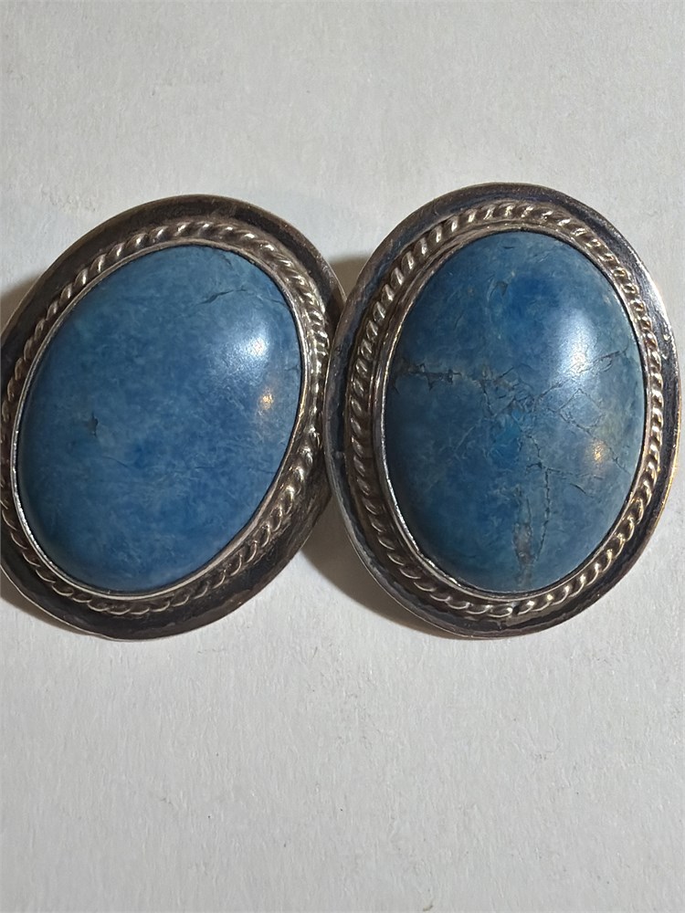 Vintage Sterling Silver Blue Motteled Onyx Navajo Earrings S(LBDD)