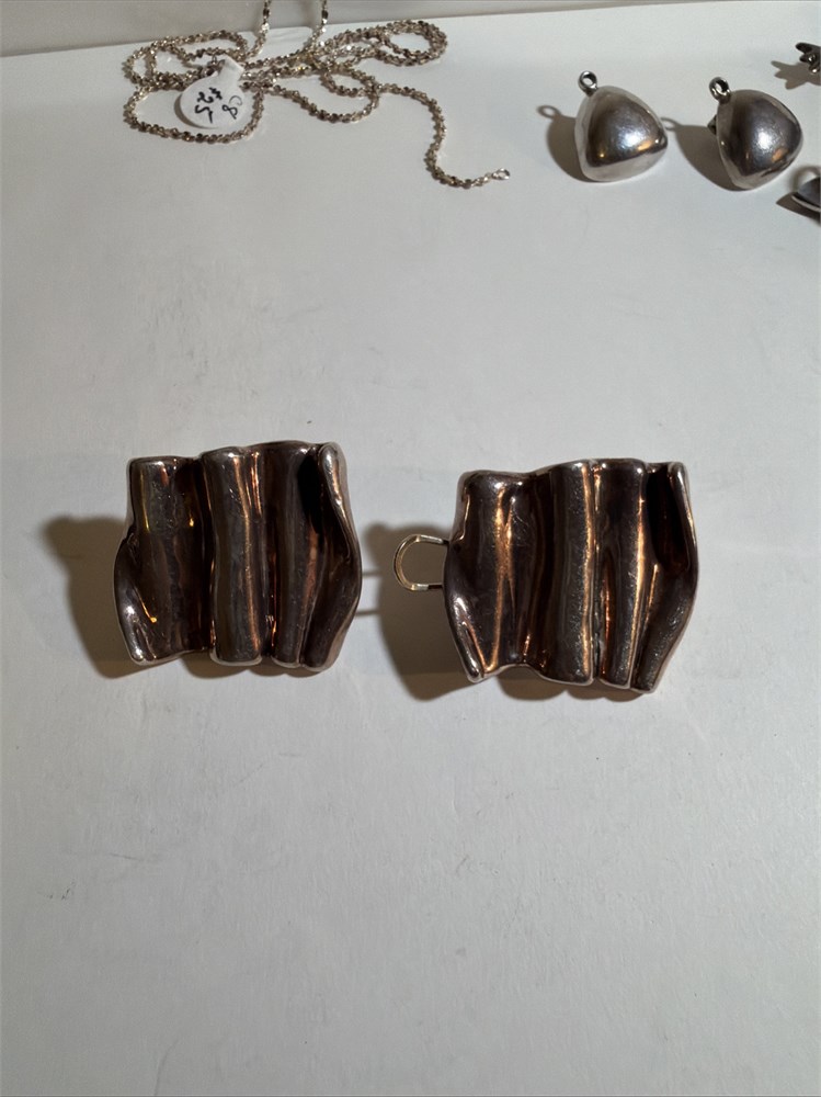 Abstract Wave Slide earrings Signed Sterling Silver Wavy Drapery Modern(LBDD)