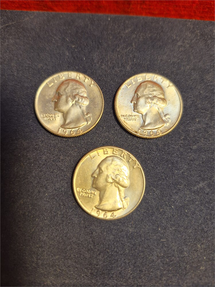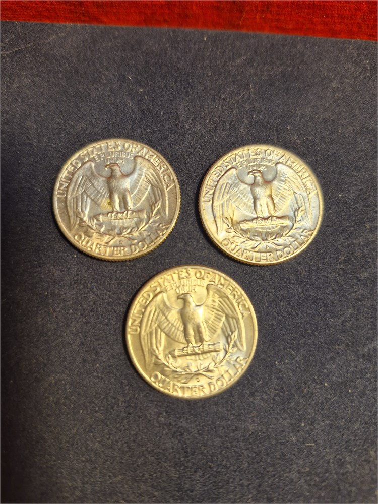 3 1964 D Washington Silver Quarters. Quarters are is nice condition.