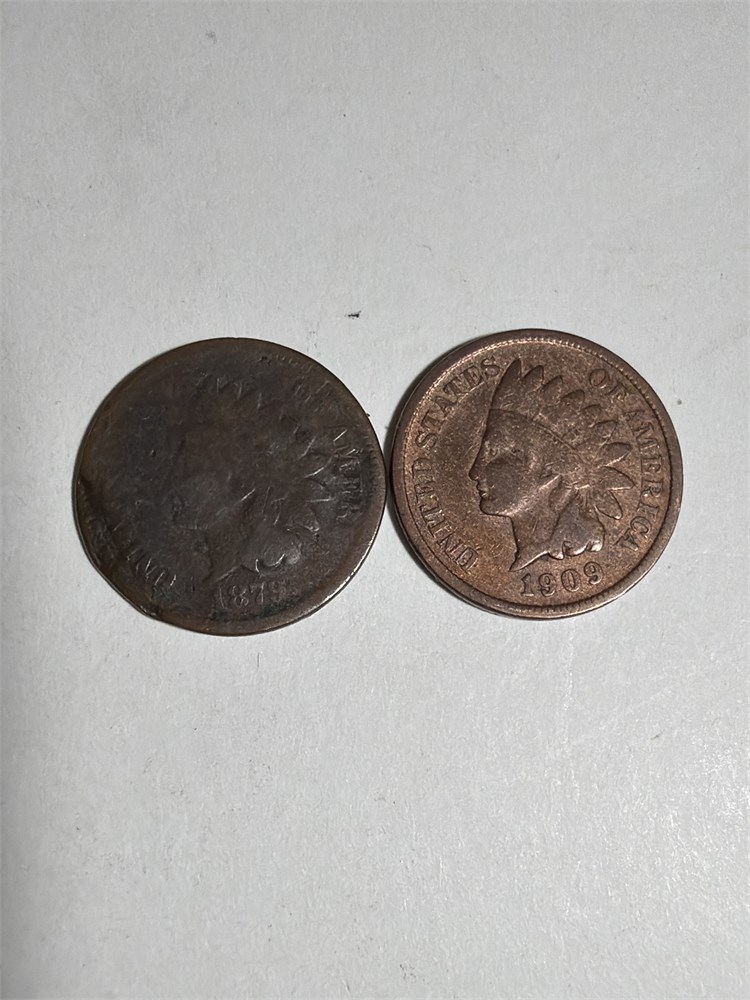 Two very rare great condition Indian head pennies, 1909 and 1879
